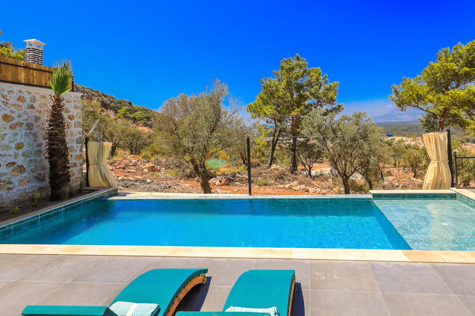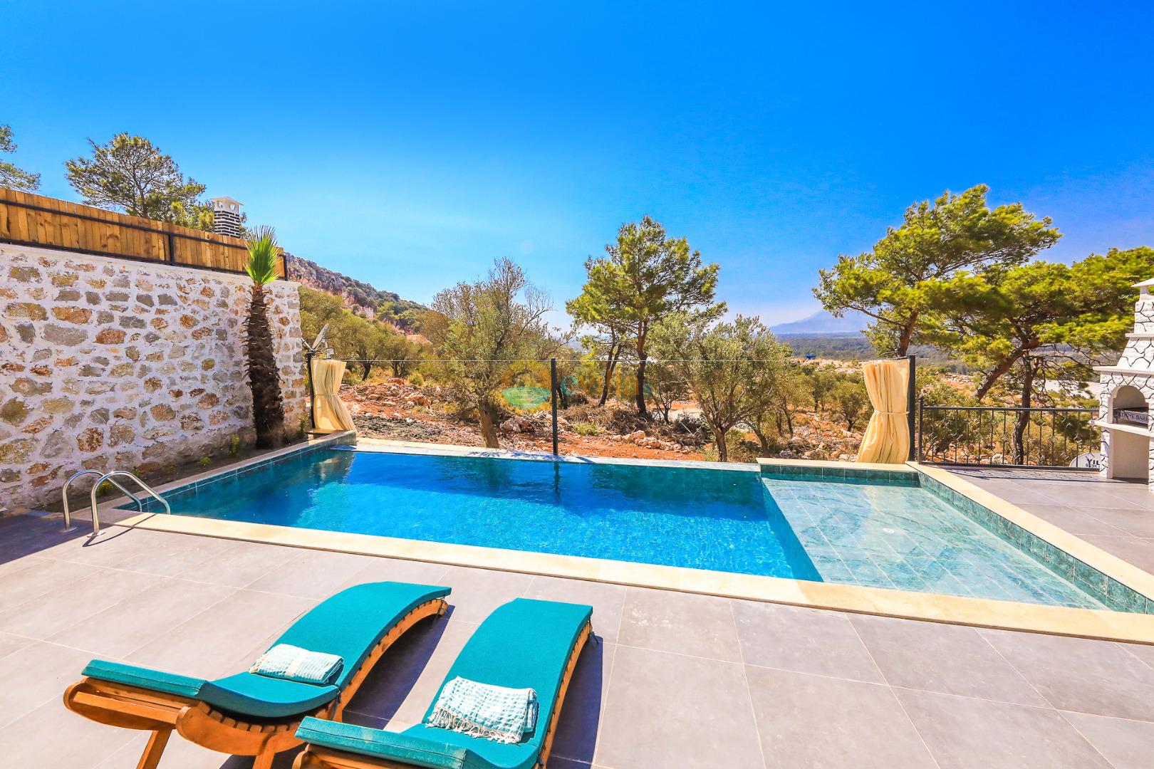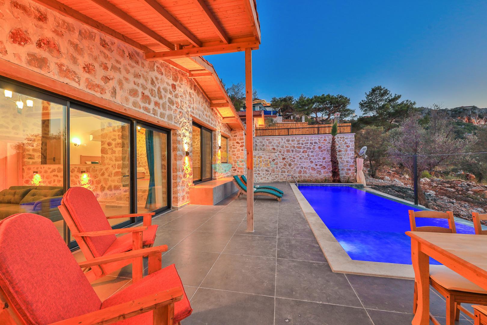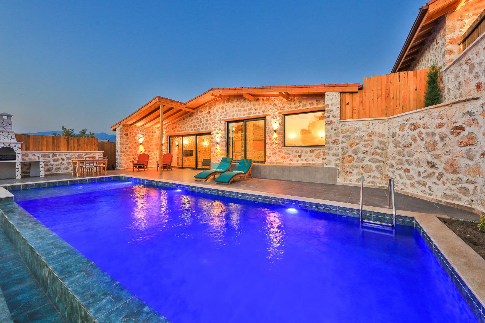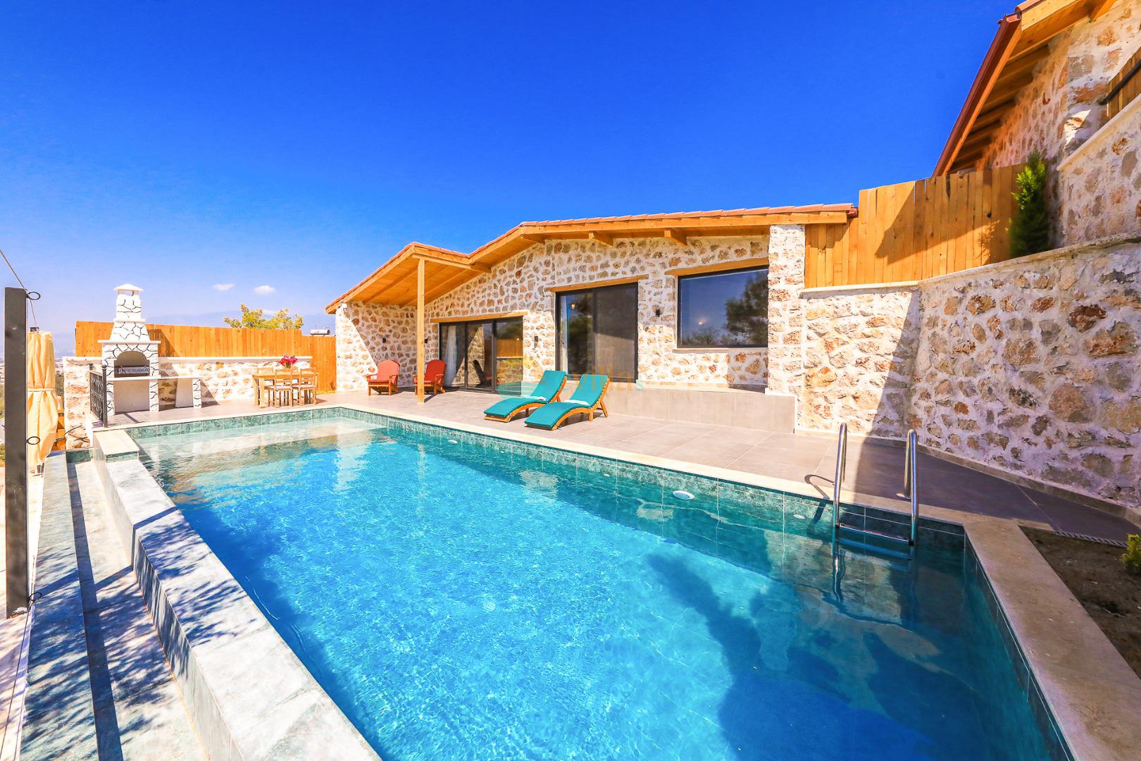 Kaş Kalkan bölgesinde bulunan villamız, muhafazakar yüzme havuzu, jakuzi ve saun...