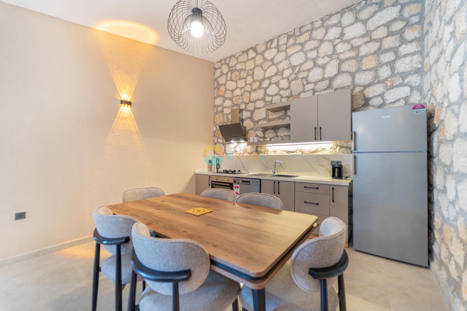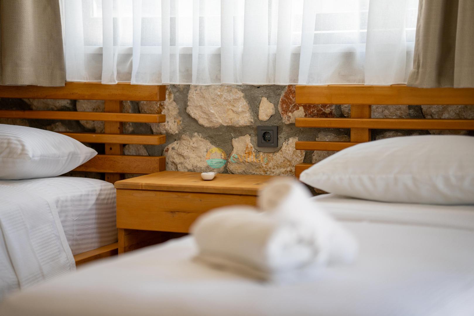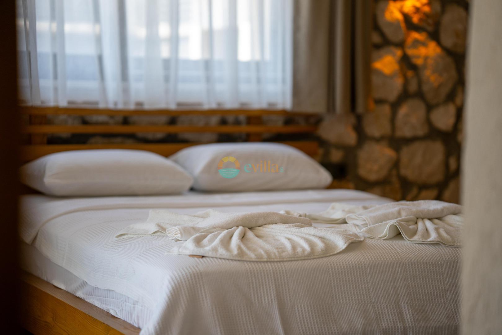 Taş mimariye sahip villamız 4 kişi kapasiteli olup içerisinde 2 yatak odası ve 2 WC-DUŞ mevcuttur. Girişte açık mutfak, salon, TV ve klima yer almaktadır. Birinci yatak odası içerisinde iki tek kişilik yatak, WC-DUŞ ve klima bulunurken, diğer oda içerisinde ise bir çift kişilik yatak, WC-DUŞ ve klima mevcuttur.
