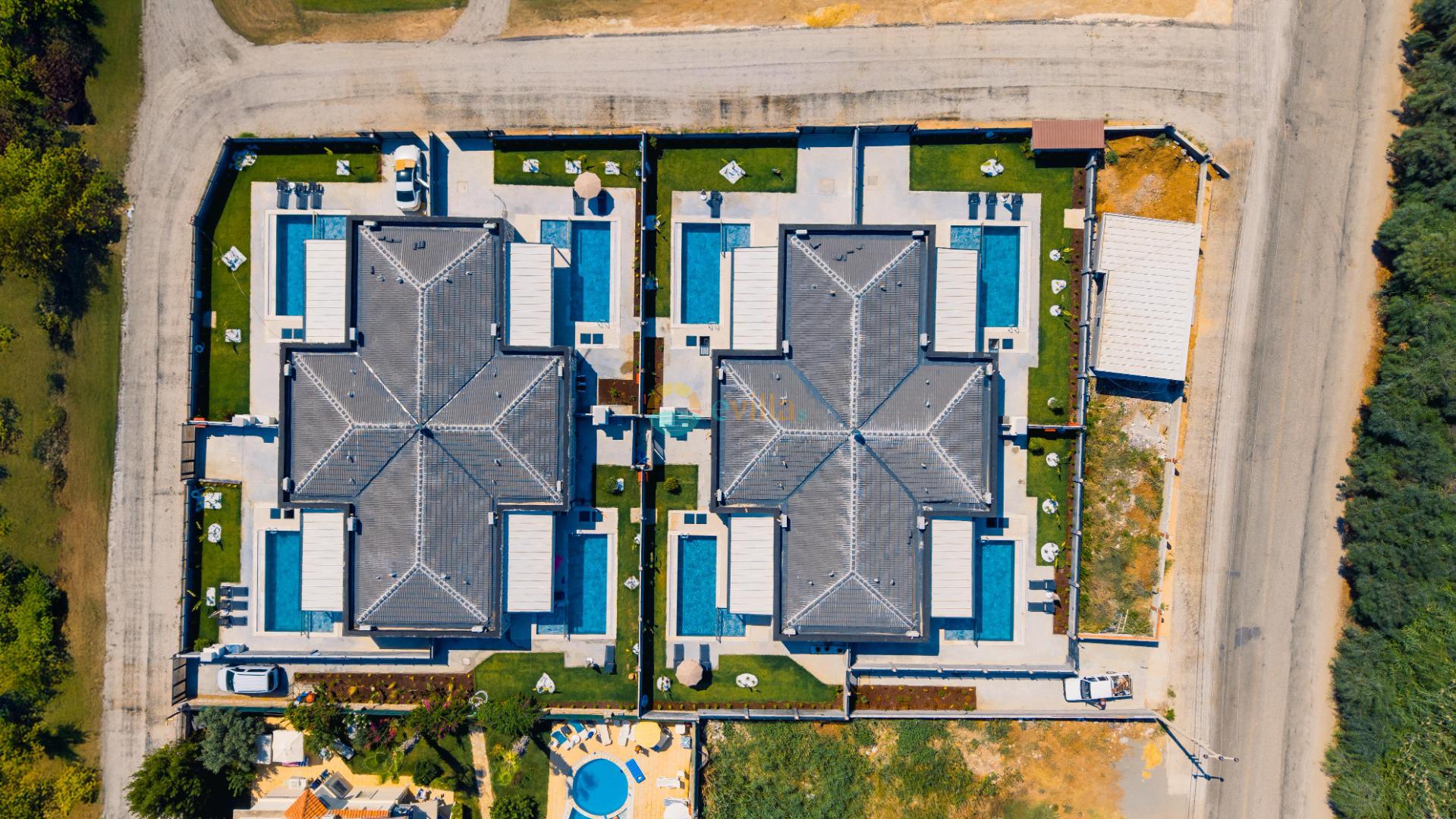 8 villadan oluşan kompleksimiz de tek çekim kullanılmış olup iç detayları tamamen aynıdır. Sadece havuz terası ve yeşil çim alanlarında farklılık bulunmaktadır. Bazı çim alanları küçük bazıları ise nispeten geniştir.