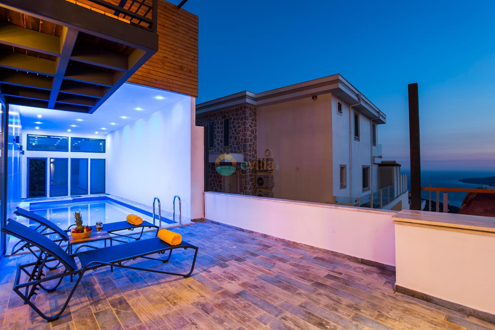 Kalkan Kördere'de Deniz Manzaralı, Isıtmalı Kapalı Havuzlu Lüks Villa